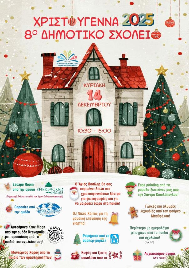 Σας περιμένουμε όλους στη Χριστουγεννιάτικη Γιορτή του Συλλόγου Γονέων και Κηδεμόνων του 8ου Δημοτικού Σχολείου